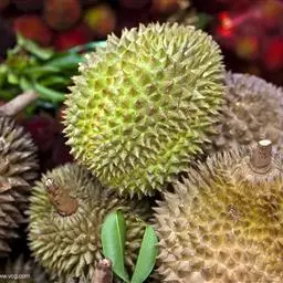 榴梿,是一种锦葵目、木棉科巨型的热带常绿乔木,叶片长圆,顶端较尖,聚伞花序,花色淡黄,果实足球大小…