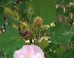 苘麻锦葵科苘麻属一年生亚灌木草本植物。茎秆较高,上面有柔毛;叶子较大且有纹路,浅绿色,边缘不平整,…