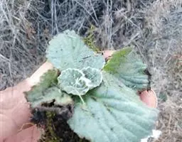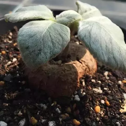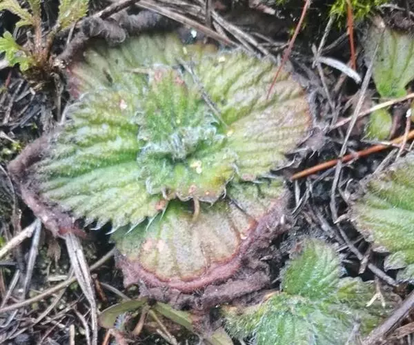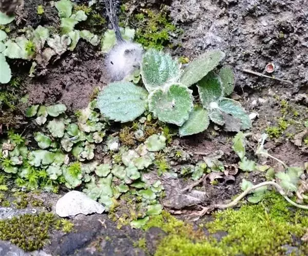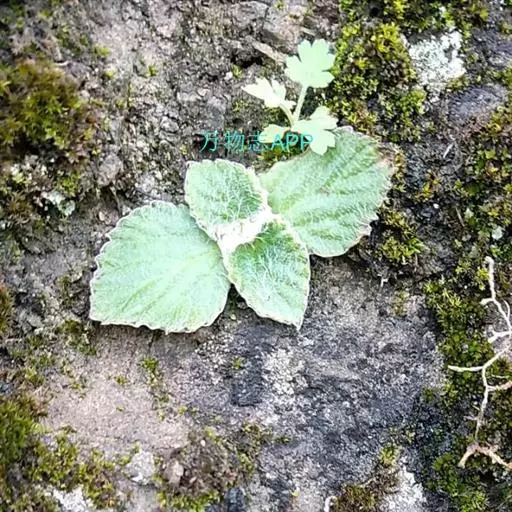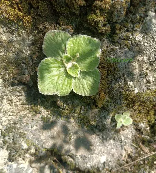 多年生草本。叶全部基生,莲座状,无柄,近圆形,圆卵形,卵形,长1.8-7厘米,宽1.2-5.5厘米,上面被白色贴伏长柔毛,下面被白色或淡褐色贴伏长绒毛,顶端圆形,边缘具牙齿或波状浅齿,叶脉不明显。