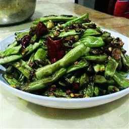 干煸四季豆是一道特色传统菜肴,属于川菜菜系,主要制作材料有四季豆、猪肉、红干辣椒等。干煸四季豆口味…
