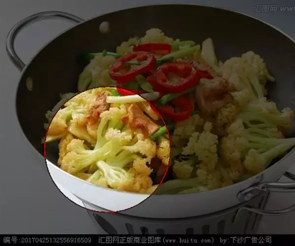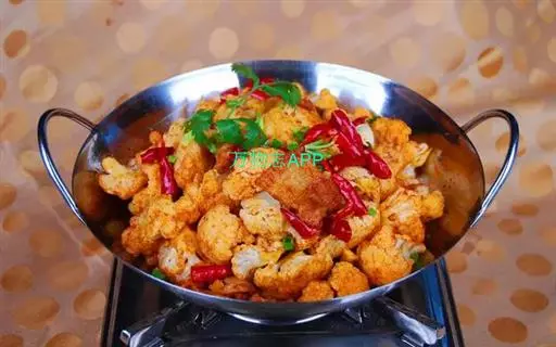 3、炒制花菜时一定要小火煸炒,不用加水,等炒出花菜香味时再加调味料会更入味;