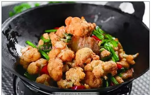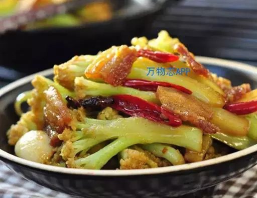 2、炒花菜油的用量一定要多一些才够香,用五花肉来煸炒,五花肉的油脂也会让花菜的味道更香;