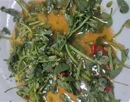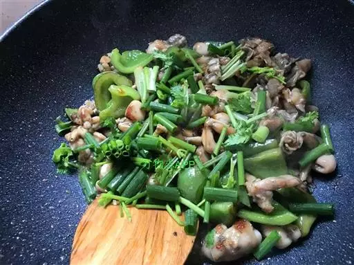 4、最后那把大蒜叶入锅后,不要马上盛起,盖上盖子焖一会儿,大蒜叶颜色更碧绿更好看。