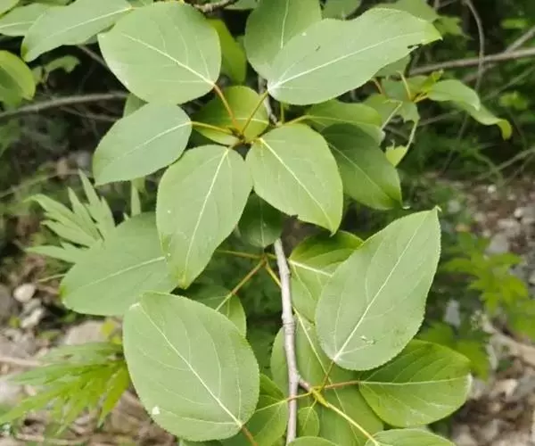 卵叶山杨(植物研究):叶卵形,长4-6厘米,宽2.5-4.5厘米,先端急尖,基部圆形或阔楔形,边缘具粗锯齿。分布于甘肃、陕西、山西、河北。生长于海拔600-1800米的山坡。