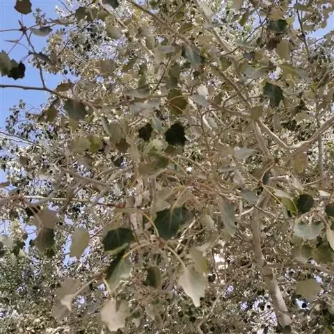 黑杨,为乔木,高30米;树冠阔椭圆形。树皮暗灰色,老时沟裂。小枝圆形,淡黄色,无毛。芽长卵形,富粘质,…