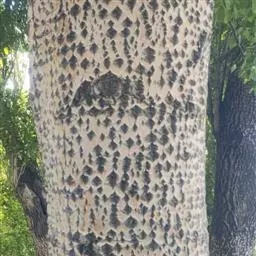 乔木,高达25米,胸径约60厘米。树皮光滑灰绿色或灰白色,老树基部黑色粗糙;树冠圆形。小枝圆筒形,光滑,赤褐色,萌枝被柔毛。芽卵形或卵圆形,无毛,微有粘质。