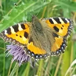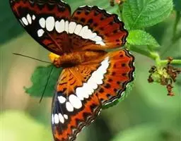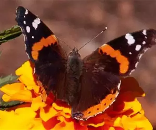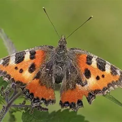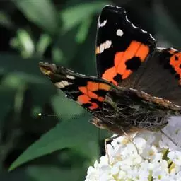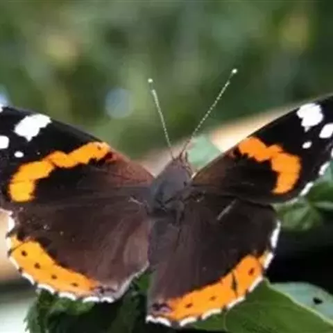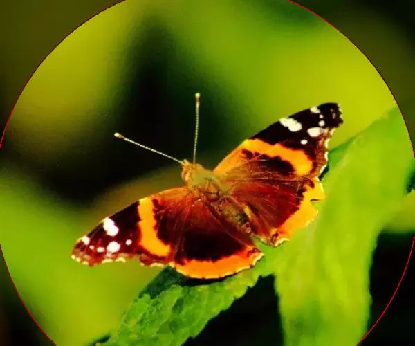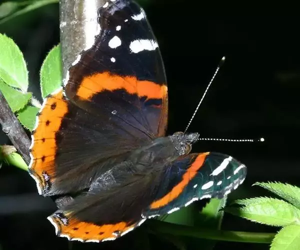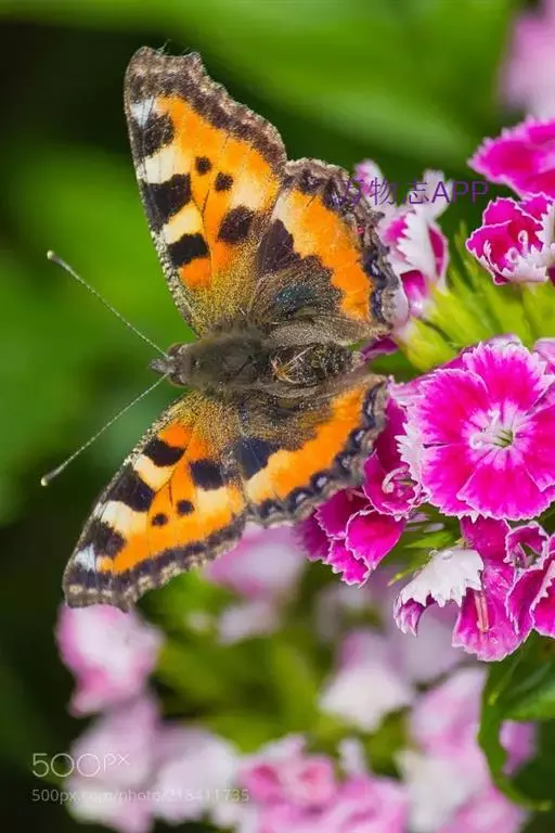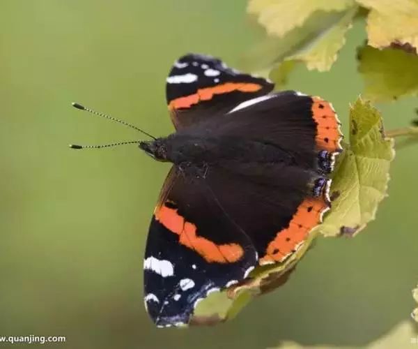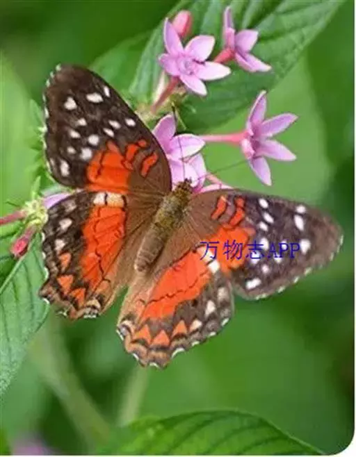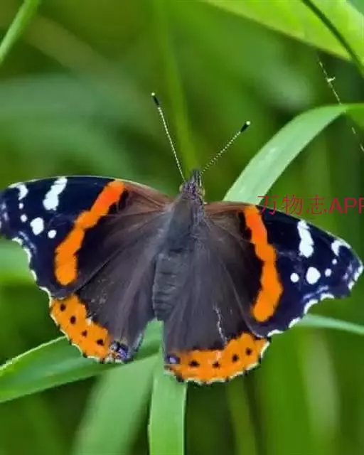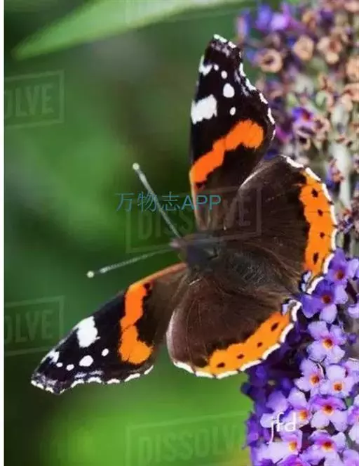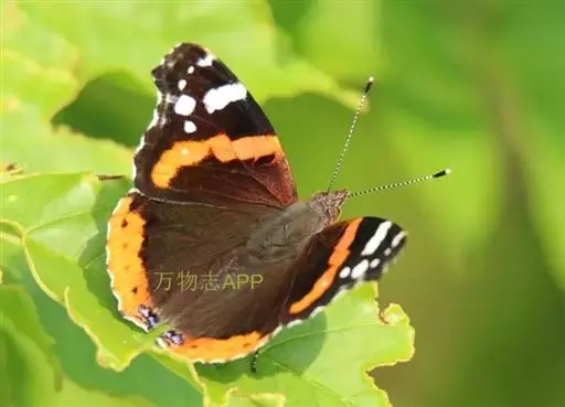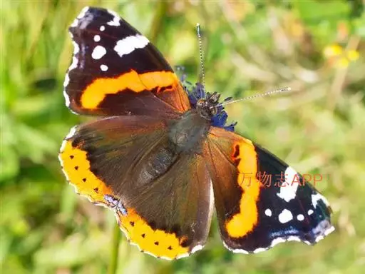 优红蛱蝶(学名:Vanessa atalanta):翼展4.5-12厘米。是一种美丽的蝴蝶。色彩鲜艳,花纹相当复杂。前足相当退化,短小无爪。前翅R脉5条,常共柄。卵呈半圆球形。幼虫头上常有突起,体节上有枝刺,腹足趾钩1至3序中列式。蛹为垂蛹。