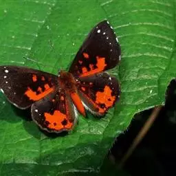 蛱蝶的成虫性成熟后,在蛹中沿着头和胸破壳钻出,刚羽化的蝴蝶翅膀皱褶和腹部膨胀,这时的蝴蝶无法躲避天敌,翅膀展开后,蛱蝶就可以飞翔了,蛱蝶的前后翅不同步扇动,成虫以腐烂果实的汁液为食物。