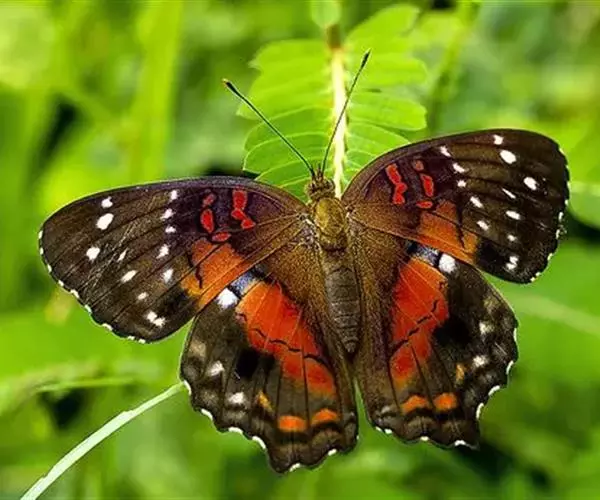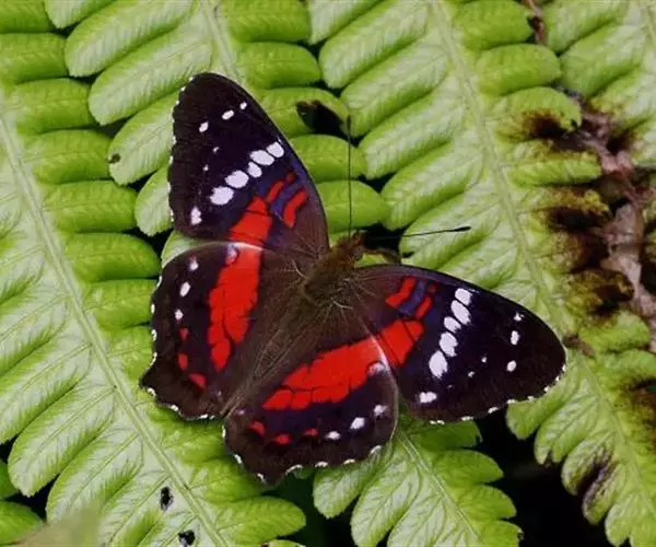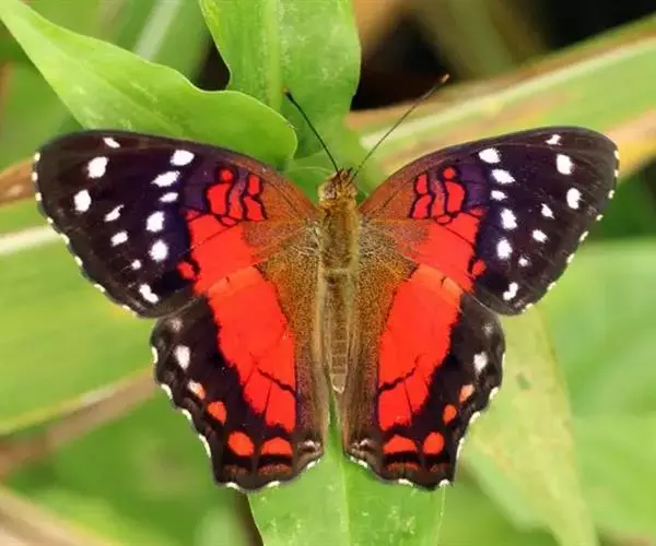 优红蛱蝶是一种美丽的蝴蝶。翼展4.5-12厘米。色彩鲜艳,花纹相当复杂。后翼为黑色,有红橙色频带,边缘处有白色细带;前翅正面也是黑色,正中有红色带,近翼角处有心状的白色斑纹。这些蝴蝶往往在夏季比冬季具更亮的颜色和较大的体重。腿和眼睛往往是多毛,头中等大。