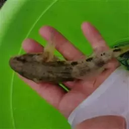 用干毛巾将亲鱼擦干,放入托盘。取受精袋,折成筒状,用左手的中指、无名指、小指夹住受精袋,然后取雌鱼,拎起头部,右手拇指和其余四指合拢,拇指轻按雌鱼腹部,把卵挤入受精袋。再用右手倒拿雄鱼,鱼头指向手臂,臀鳍离开鱼卵1厘米,将精液挤出,把雄鱼体放在鱼卵上。在受精袋中加入30毫升0.7%生理盐水,抓住袋口上下摇动使其充分混合。将受精袋充满空气,再用橡皮筋扎好口,静放30分钟。然后取出受精袋内的雄鱼,再加入过滤后的河水100毫升,静置等待放入孵化池。
