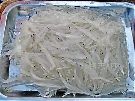 中文名:银鱼 yínyú (《纲目》),英语名:whitebait;
