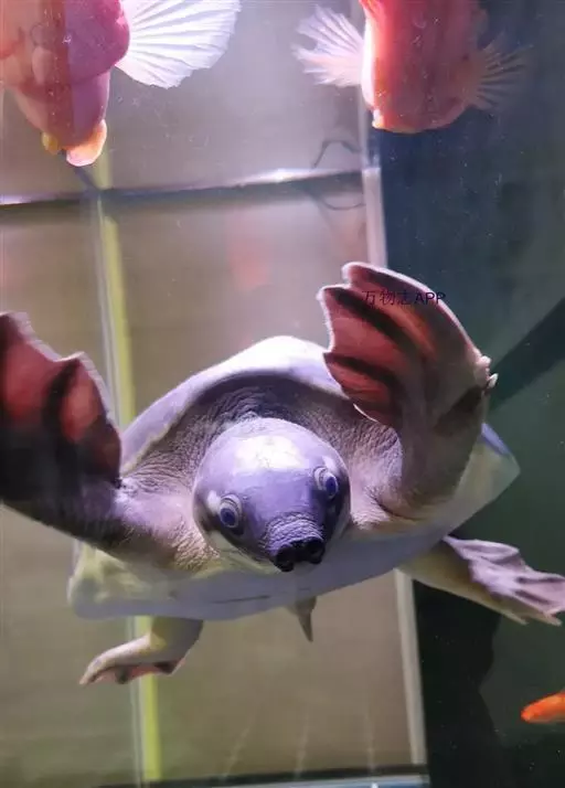 幼龟则偏向于肉食性,因此可多喂些鱼虾、牛肉、蚯蚓、红虫等动物性饵料,以满足其生长所需。由于猪鼻龟的肢体呈鳍状,不利于撕扯食物,故投喂前要切成适当的小块,以便龟的吞食。幼龟一般不喜欢植物性食物,但有些饲养者认为它们比较喜欢粟米、香蕉、梨等甜度较高的蔬果,另外也可试喂苦草、金鱼藻、菊花轮藻等各种水生植物,以利平衡营养。