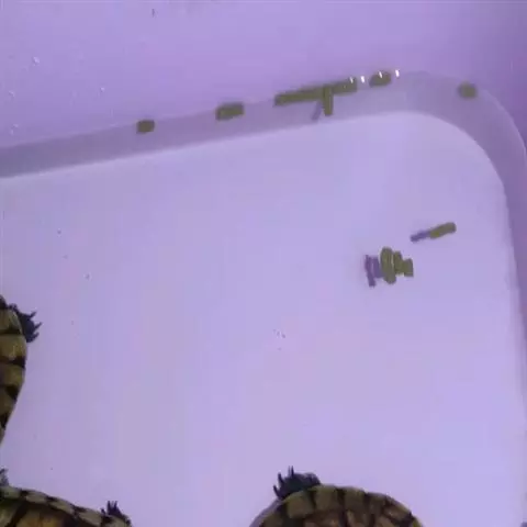 驯食:通常该种龟鳖喜在水底觅食,但沉性饲料不易观察到吃食情况,为在透明度较低的养龟水体中便于观察吃食、龟活动、检查存活等情况更为了提高饲料利用率,提倡采用浮性颗粒饲料,因此用“声诱、时、定位”及诱食效果好的腩化浮颗粒饲料来驯食,一般经4-6天,即可上浮吃浮性饲料。