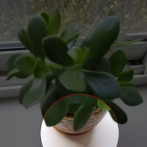 多年生植物。叶片椭圆形,略肉质,交互对生,叶面光滑,绿色,叶缘具细小缺刻。