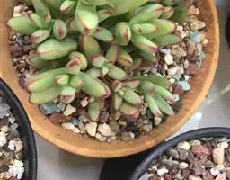 红数珠是景天科青锁龙属植物,叶片对生,叶片长圆型,叶片肥厚。叶片表面有不规则凸起的白色颗粒,…