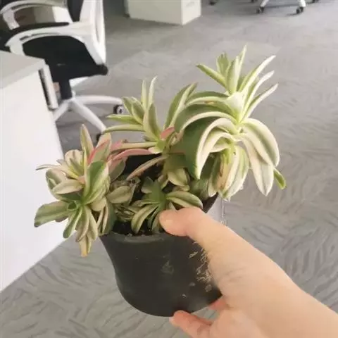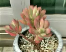 三色花月锦是景天科青锁龙属多肉植物,燕子掌的栽培品种,叶片有红、黄、白斑块,色彩斑斓。花期秋季。