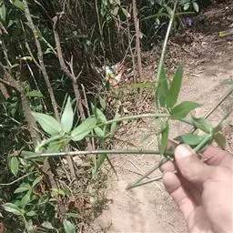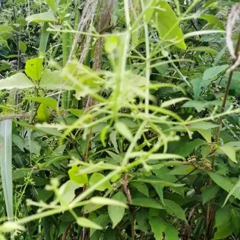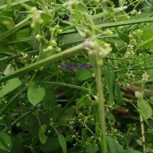 茜草 草质攀援藤木,长通常1.5-3.5米;根状茎和其节上的须根均红色;茎数至多条,从根状茎的节上发出,细长,方柱形,有4棱,棱上生倒生皮刺,中部以上多分枝。