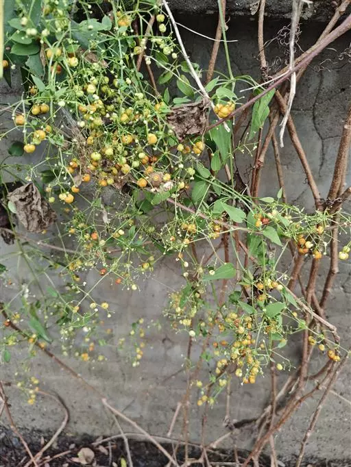 聚伞花序腋生和顶生,多回分枝,有花10余朵至数十朵,花序和分枝均细瘦,有微小皮刺;花冠淡黄色,干时淡褐色,盛开时花冠檐部直径约3-3.5毫米,花冠裂片近卵形,微伸展,长约1.5毫米,外面无毛。果球形,直径通常4-5毫米,成熟时橘黄色。花期8-9月,果期10-11月。