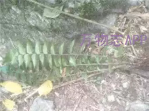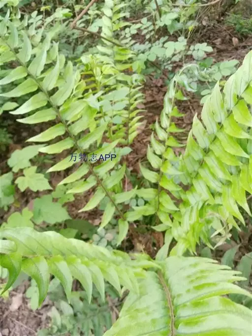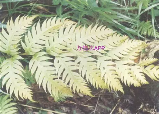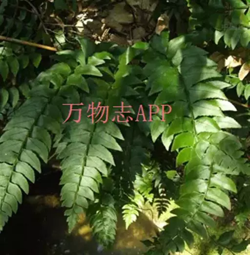 多年生草本,高50~100cm。根茎粗壮,斜生,有较多坚硬的叶柄残基及黑色细根,密被深褐色、长披针形的大鳞片。叶簇生于根茎顶端;叶柄长10~25cm,基部以上直达叶轴密生棕色条形至钻形狭鳞片,叶片草质,倒披针形,长60~100cm,中部稍上处宽20~25cm,二回羽状全裂或深裂;羽片无柄,裂片密接,长圆形,圆头或圆截头,近全缘或先端有钝锯齿;上面深绿色,下面淡绿色,侧脉羽状分叉。孢子叶与营养叶同形,孢子囊群着生于叶中部以上的羽片上,生于叶背小脉中部以下,囊群盖肾形或圆肾形,棕色。