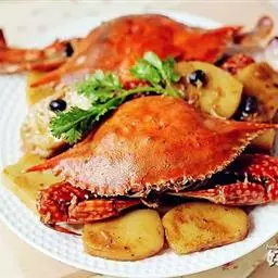 梭子蟹800克、花椒5克、蒜瓣3个、老姜3片、葱6克、生抽1汤匙、白糖、盐各1茶匙、料酒、海鲜酱各2茶匙