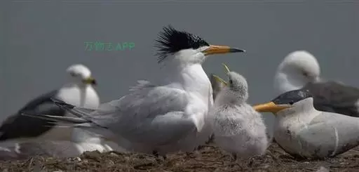 中华凤头燕鸥(学名:Thalasseus bernsteini):是中型水鸟,体长38-42厘米。额、头顶和冠羽黑色,上体淡灰色,翅灰色,外侧初级飞羽外翈黑色。尾白色,呈深叉状。下体白色。嘴黄色,具有较宽的黑色尖端。脚黑色。非繁殖羽和夏羽相似,但前额和头顶白色。虹膜褐色。嘴比燕鸥类略粗,而且稍微弯曲,呈黄色,尖端具有黑色的亚端斑。