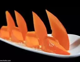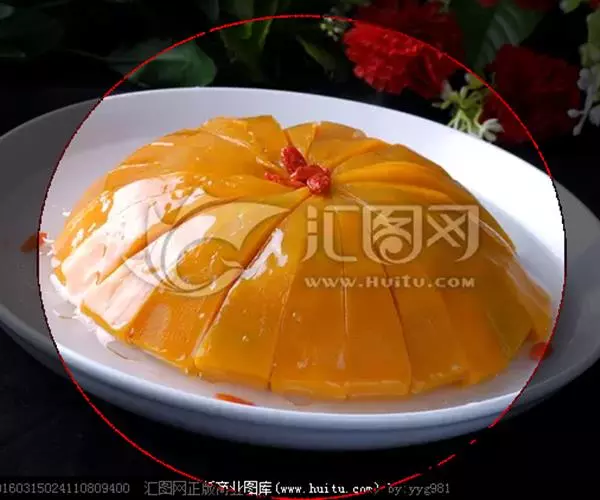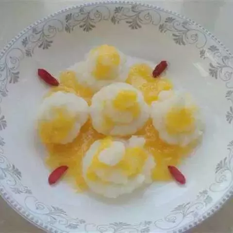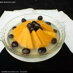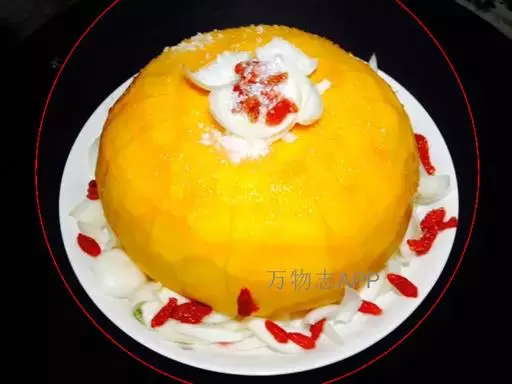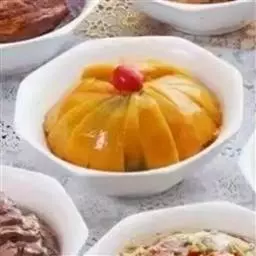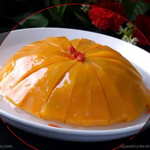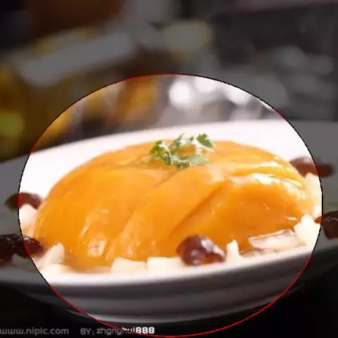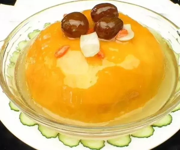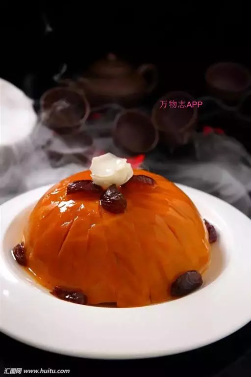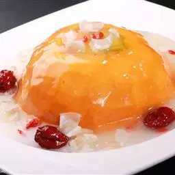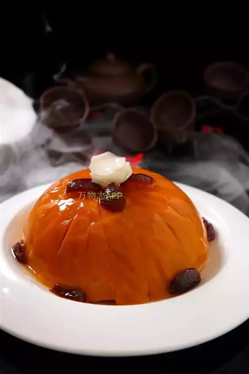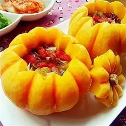 4、南瓜放在盘中,放上红枣,中间放上百合。