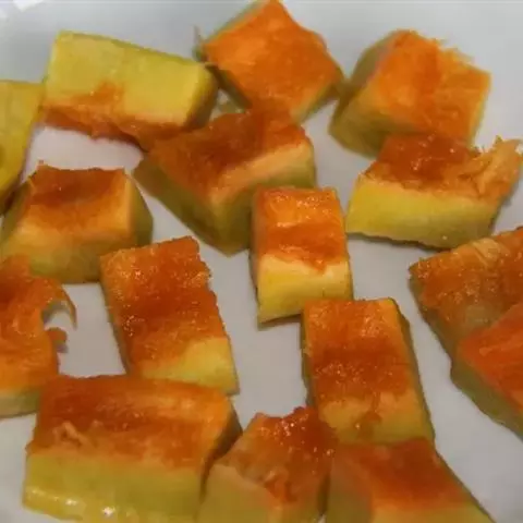 蒸南瓜 1、南瓜洗净去皮,切成块。