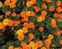 万寿菊是菊科万寿菊属一年生草本植物,别名孔雀菊、缎子花、臭菊花、西番菊、红黄草、小万寿菊、臭芙蓉、孔雀草。万寿菊茎近基部分枝。叶羽状分裂,长5-10厘米,宽4-8厘米,裂片长椭圆形或披针形,具锐齿,上部叶裂片齿端有长细芒,叶缘有少数腺体。头状花序单生,径5-8厘米,花序梗顶端棍棒状。总苞长1.8-2厘米,径1-1.5厘米,杯状,顶端具尖齿。舌状花黄或暗橙黄色,长2.9厘米,舌片倒卵形,长1.4厘米,基部成长爪,先端微弯缺。管状花花冠黄色,长约9毫米,冠檐5齿裂。瘦果线形,被微毛;冠毛有1-2长芒和2-3短而钝鳞片。花期7-9月。万寿菊中国各地均有栽培,在广东和云南南部、东南部已归化,国外原产墨西哥。万寿菊对土壤要求不严,但以肥沃疏松排水良好的土壤为好。耐移栽,种子发芽适温21-24℃,植株生长适合温度为20-29℃。喜温暖和阳光充足的环境,不