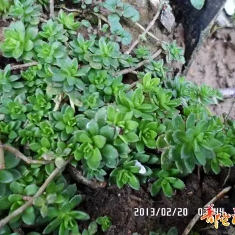 薄雪万年草别名矶小松,景天科景天属多年生草本植物,其细小的蓝绿色棒状叶片环绕生长于茎端,…