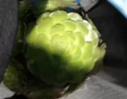 荒玉为番杏科生石花属,原产南非。株体呈白粉色,表面布满凹凸纹路,凹陷处为红褐色,每年秋季开黄花。