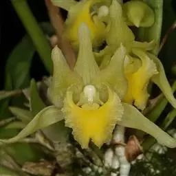 大序隔距兰 Garay):茎直立,扁圆柱形,伸长,达20余厘米,通常粗5-8毫米,被叶鞘所包,…