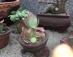 大和锦是景天科拟石莲花属的多肉植物。肉质叶排成紧密的莲座状,广卵形至散三角卵形,背面突起呈龙骨状,…
