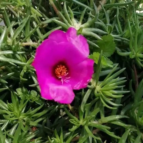 大花马齿苋:一年生草本,高10-30厘米。茎平卧或斜升,紫红色,多分枝,节上丛生毛。叶密集枝端,…