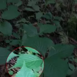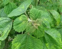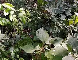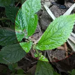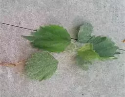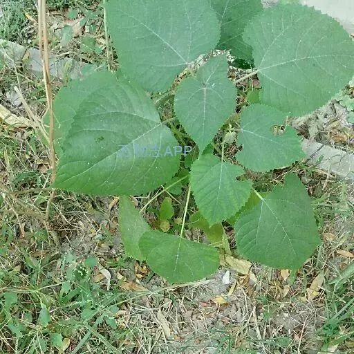 贴毛苎麻(变种) 与苎麻的区别:茎和叶柄只被贴伏的短糙毛,无开展的长硬毛;叶片多为卵形,稀圆卵形,基部突收狭呈楔形;托叶基部合生。