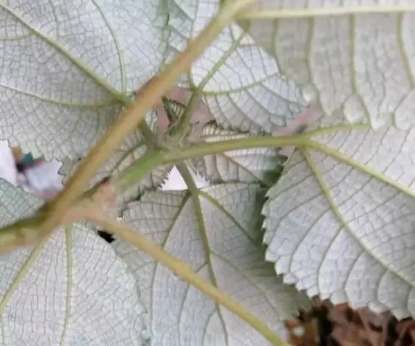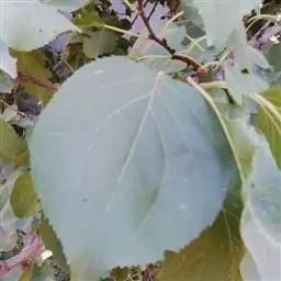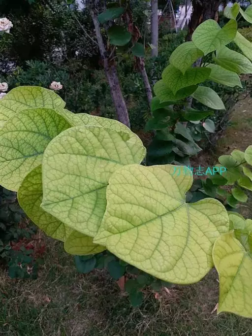 叶互生;叶片草质,通常圆卵形或宽卵形,少数卵形,长6-15厘米,宽4-11厘米,顶端骤尖,基部近截形或宽楔形,边缘在基部之上有牙齿,上面稍粗糙,疏被短伏毛,下面密被雪白色毡毛,侧脉约3对;叶柄长2.5-9.5厘米;托叶分生,钻状披针形,长7-11毫米,背面被毛。