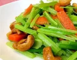 6把青蒜、胡萝卜片炒软,倒入素鸡片翻炒