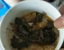 4.旺火将植物油烧热,倒入酱油炝锅,立即加水1碗,放入紫菜、虾皮煮10分钟,再放入蛋糊、醋略加搅动,蛋熟起锅,加入味精、香油即成。
