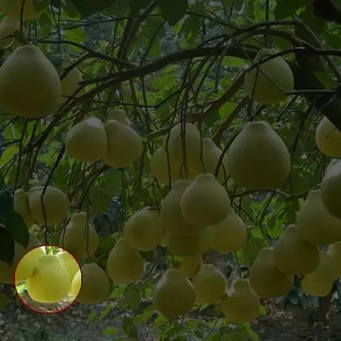 金香柚:又称长柚,香柚,金瓜柚或慈利甜柚。果椭圆形,果顶平,果基短颈状,果皮光滑,金黄色,颇薄,易剥离,果心大而空,果肉米黄色,柔嫩,甚甜。果期9月下旬。
