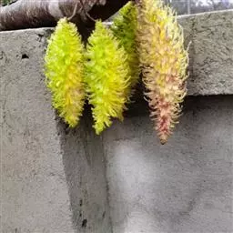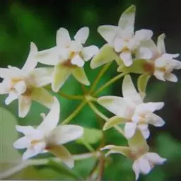 聚伞花序伞房状,着花30朵;花萼裂片卵状长圆形;花冠白色,辐状,裂片反折,内面具疏柔毛;副花冠浅杯状,裂片椭圆形,肉质,钝头,在每裂片内面的中部有1个三角形的舌状鳞片;花粉块每室1个,下垂;柱头圆锥状,顶端2裂。蓇葖双生,披针形,长8厘米,直径1厘米;种子卵状椭圆形;种毛白色绢质。花期6-9月,果期7-11月。