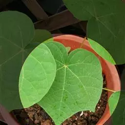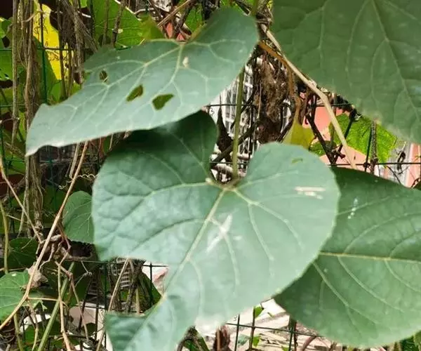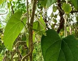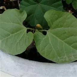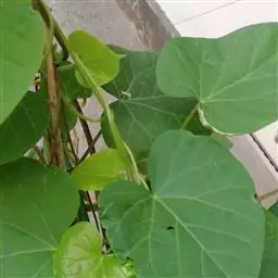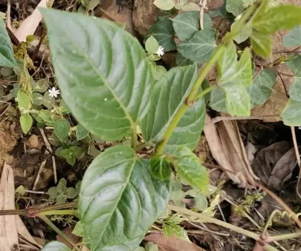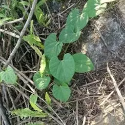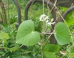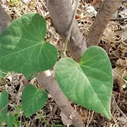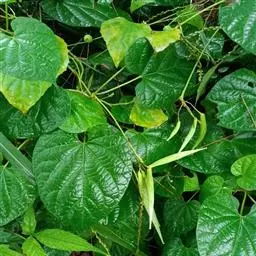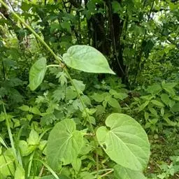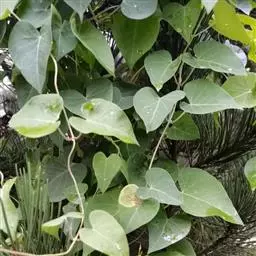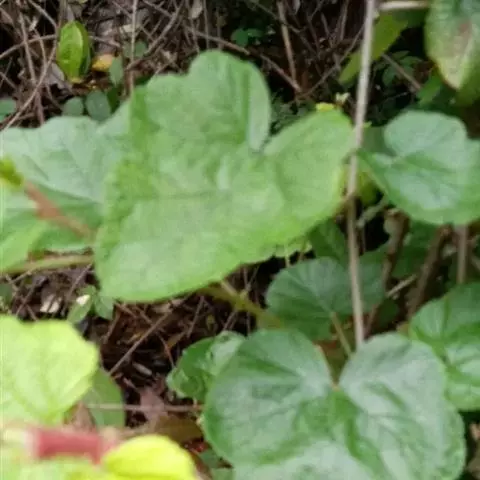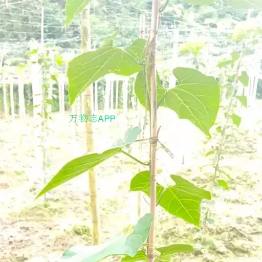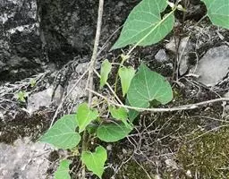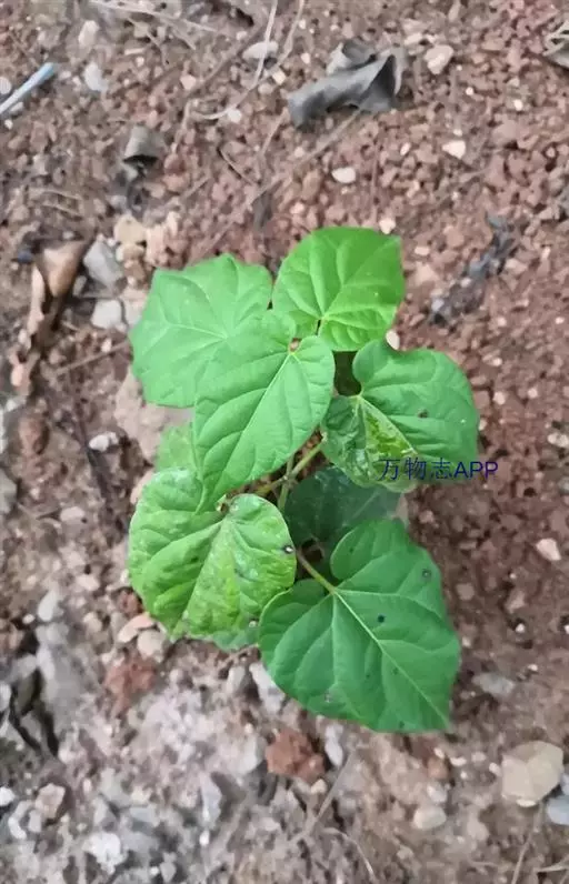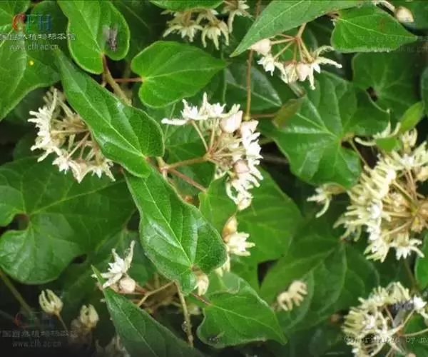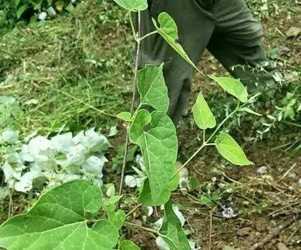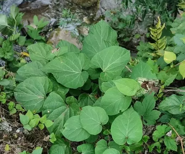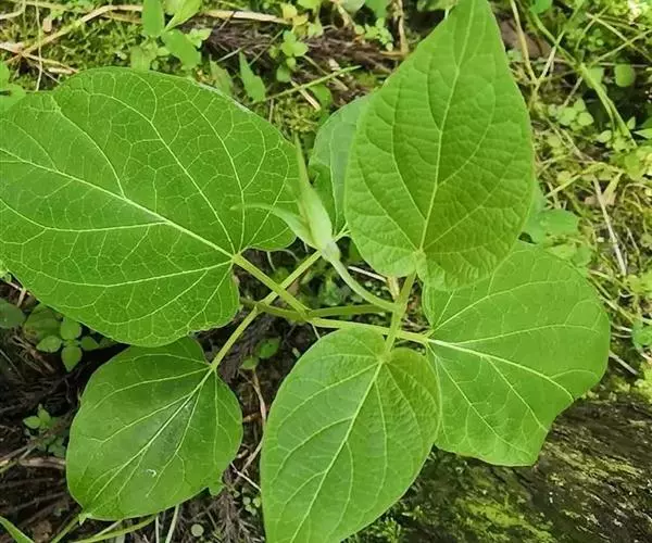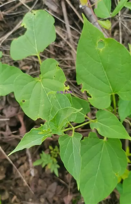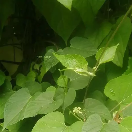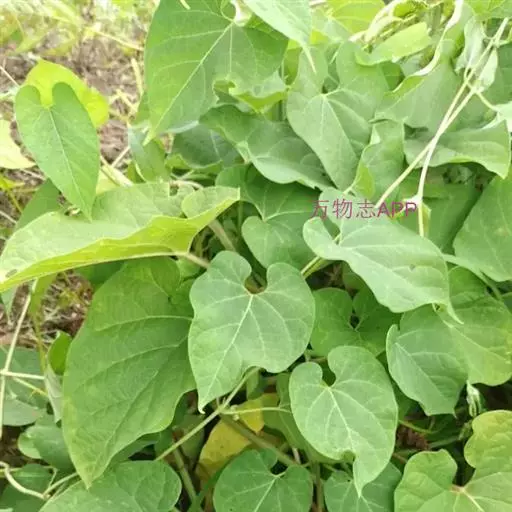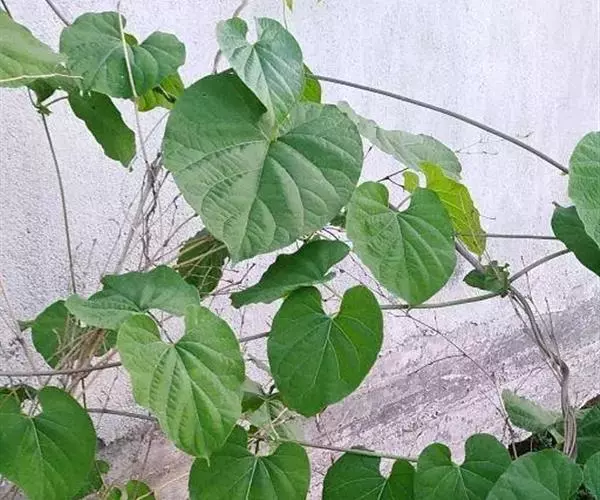 蔓性半灌木;宿根肥厚,呈块状;茎圆形,被微柔毛。叶对生,膜质,被微毛,宽卵形至卵状长圆形,长4-12厘米,宽4-10厘米,顶端短渐尖,基部心形。