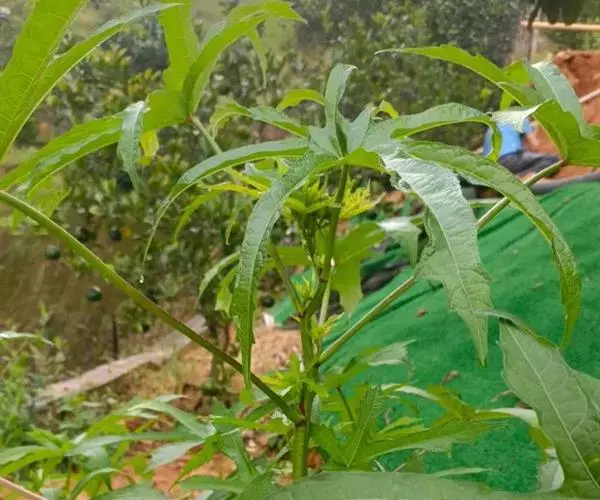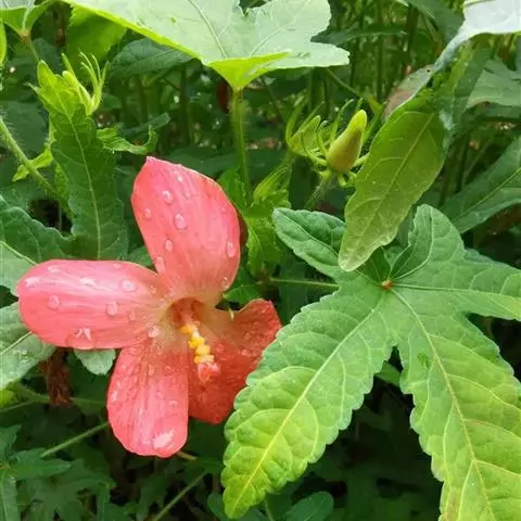 别名:秋葵、豹子眼睛花、霸天伞、棉花蒿、棉花葵