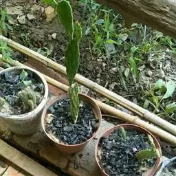 扦插:将插穗基部浅埋入基质内,切忌过深,造成腐烂。此时插穗难以直立(因其经晾晒已变软),可以将它平置在基质上;也可用小木棒支撑,再用双手轻轻压紧插穗两旁的土,使其与土密接。