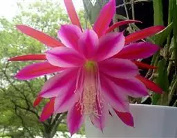 嫁接时,所选用的砧木-三角柱就是这类仙人掌的一种。方法是将三角柱的生长点切除,并且在棱角上斜削掉,然后把已节除根系的仙人掌放在砧木的中央,接着用绳子或重物将位置固定,经过1-2周后,便可折除绳子和重物。