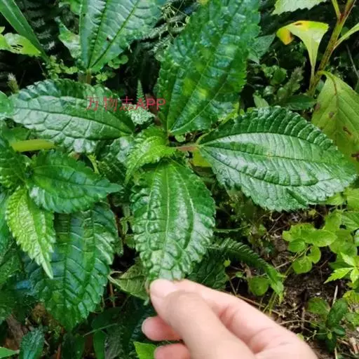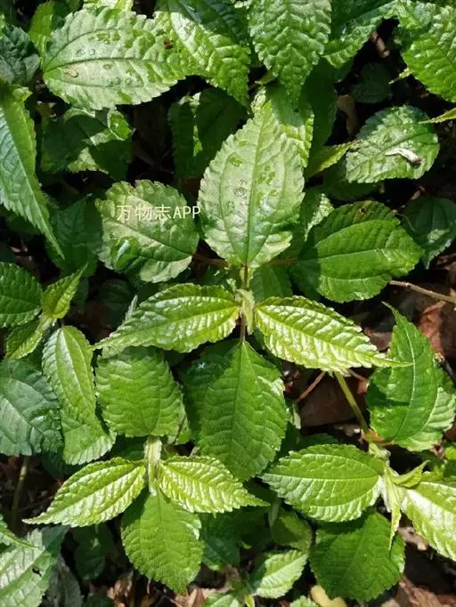 一年生草本。茎肉质,直立,高5-50厘米,无毛,分枝或不分枝。叶近膜质,同对的近等大,近平展,菱状卵形或宽卵形,长1-9厘米,宽0.6-5厘米,先端渐尖、短渐尖、锐尖或微钝(尤在下部的叶),基部常宽楔形,有时钝圆,边缘除基部全缘外,其上有牙齿或牙状锯齿,稀近全绿,两面疏生透明硬毛,钟乳体条形,长约0.3毫米,基出脉3条,侧出的一对微弧曲,伸达上部与侧脉网结或达齿尖,侧脉数对,不明显,上部的几对常网结;叶柄长0.5-4.5厘米,上部近叶片基部常疏生短毛;托叶卵状长圆形,长2-3毫米,后脱落。