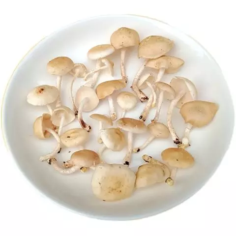 菌盖扁半球形,光滑、不粘、淡裸色,菌肉白色,有酱香味,可入药。大腿蘑营养丰富,味道香美,是极富美味的野生食用菌之一,可出口欧美、日本等国,深受外商欢迎。该菌菌体较大,肉肥厚,柄粗壮,食味香甜可口,营养丰富,是一种世界性著名食用菌。