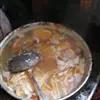5.加入姜丝、蒜粒和辣椒圈,按1:1的比例淋入啤酒和清水(喜欢酒香更浓的啤酒比例可适当增加)