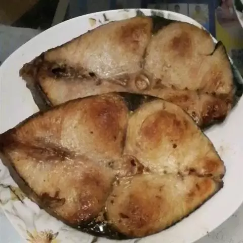 11.煎至鱼块表面金黄、鱼鳞卷曲,盛出待用
