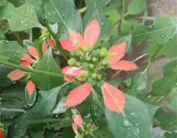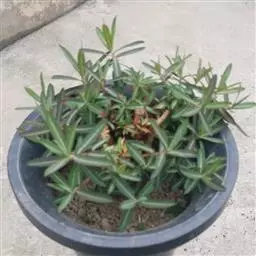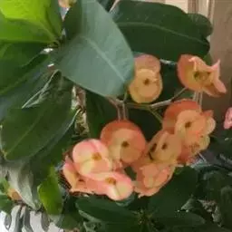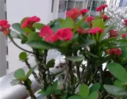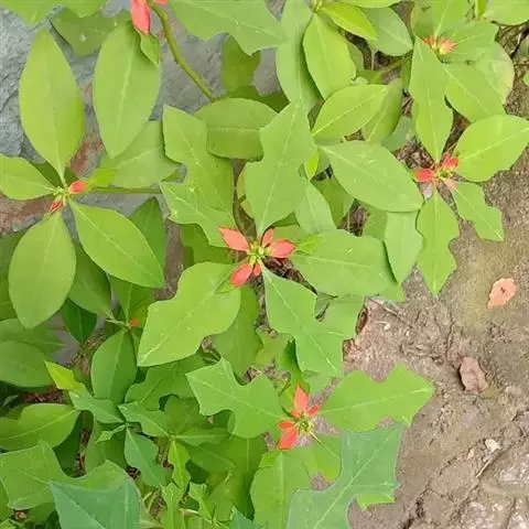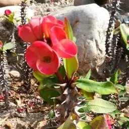 虎刺梅:别称铁海棠,是蔓生灌木植物。茎多分枝,长60-100厘米,直径5-10毫米,具纵棱,密生硬…