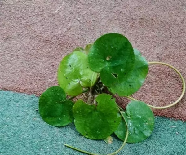 浮水草本。须根长可达30厘米。匍匐茎发达,节间长3-15厘米,直径约4毫米,顶端生芽,并可产生越冬芽。叶簇生,多漂浮,有时伸出水面;叶片心形或圆形,长4.5-5厘米,宽5-5.5厘米,先端圆,基部心形,全缘,远轴面有蜂窝状贮气组织,并具气孔;叶脉5条,稀7条,中脉明显,与第一对侧生主脉所成夹角呈锐角。雄花序腋生;花序梗长0.5-3.5厘米;佛焰苞2枚,膜质,透明,具红紫色条纹,苞内雄花5-6朵,每次仅1朵开放;花梗长5-6.5厘米;萼片3,离生,长椭圆形,长约6毫米,宽约3毫米,常具红色斑点,尤以先端为多,顶端急尖;花瓣3,黄色,与萼片互生,广倒卵形或圆形,长约1.3厘米,宽约1.7厘米,先端微凹,基部渐狭,近轴面有乳头状凸起;雄蕊12枚,成4轮排列,最内轮3枚退化,最外轮3枚与花瓣生互,基部与第3轮雄蕊联合,第2轮雄蕊与最内轮退化雄蕊基部联合,最外轮与第2轮雄蕊长约3毫米,花药长约1.5毫米,第3轮雄蕊长约3.5毫米,花药较小,花丝近轴面具乳突,退化雄蕊顶端具乳突,基部有毛;花粉圆球形,表面具凸起纹饰;雌佛焰苞小,苞内雌花1朵;花梗长4-8.5厘米;花大,直径约3厘米;萼片3,先端圆,长约11毫米,宽约4毫米,常具红色斑点;花瓣3,白色,基部黄色,广倒卵形至圆形,较雄花花瓣大,长约1.5厘米,宽约1.8厘米,近轴面具乳头状凸起;退化雄蕊6枚,成对并列,与萼片对生;腺体3枚,黄色,肾形,与萼片互生;花柱6,每枚2深裂,长约4毫米,密被腺毛;子房下位,不完全6室。果实浆果状,球形至倒卵形,长0.8-1厘米,直径约7毫米,具数条沟纹。种子多数,椭圆形,顶端渐尖;种皮上有许多毛状凸起。花果期8-10月。