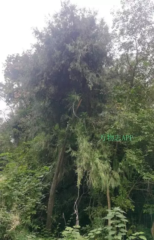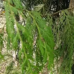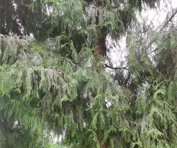 乔木,高达35米,胸径2米;树皮淡褐灰色,裂成窄长条片;小枝细长下垂,生鳞叶的小枝扁,排成一平面,两面同形,绿色,宽约1毫米、较老的小枝圆柱形,暗褐紫色,略有光泽。